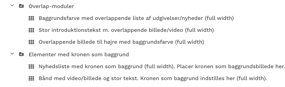 Disse elementer har vi gemt i jeres "shared modules" så I ikke kan oprette disse forfra hver gang, I vil lave et overlap-element eller et element med kronen som baggrund: